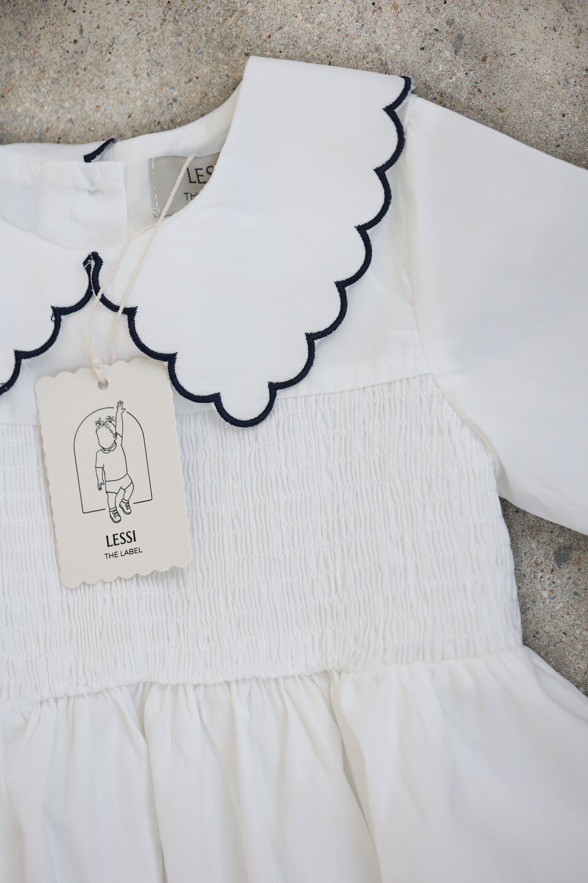 You're never too young to enjoy La Dolce Vita. Our Piccolina Romper comes fully lined with italian smocking and embroidered scallop trimming.