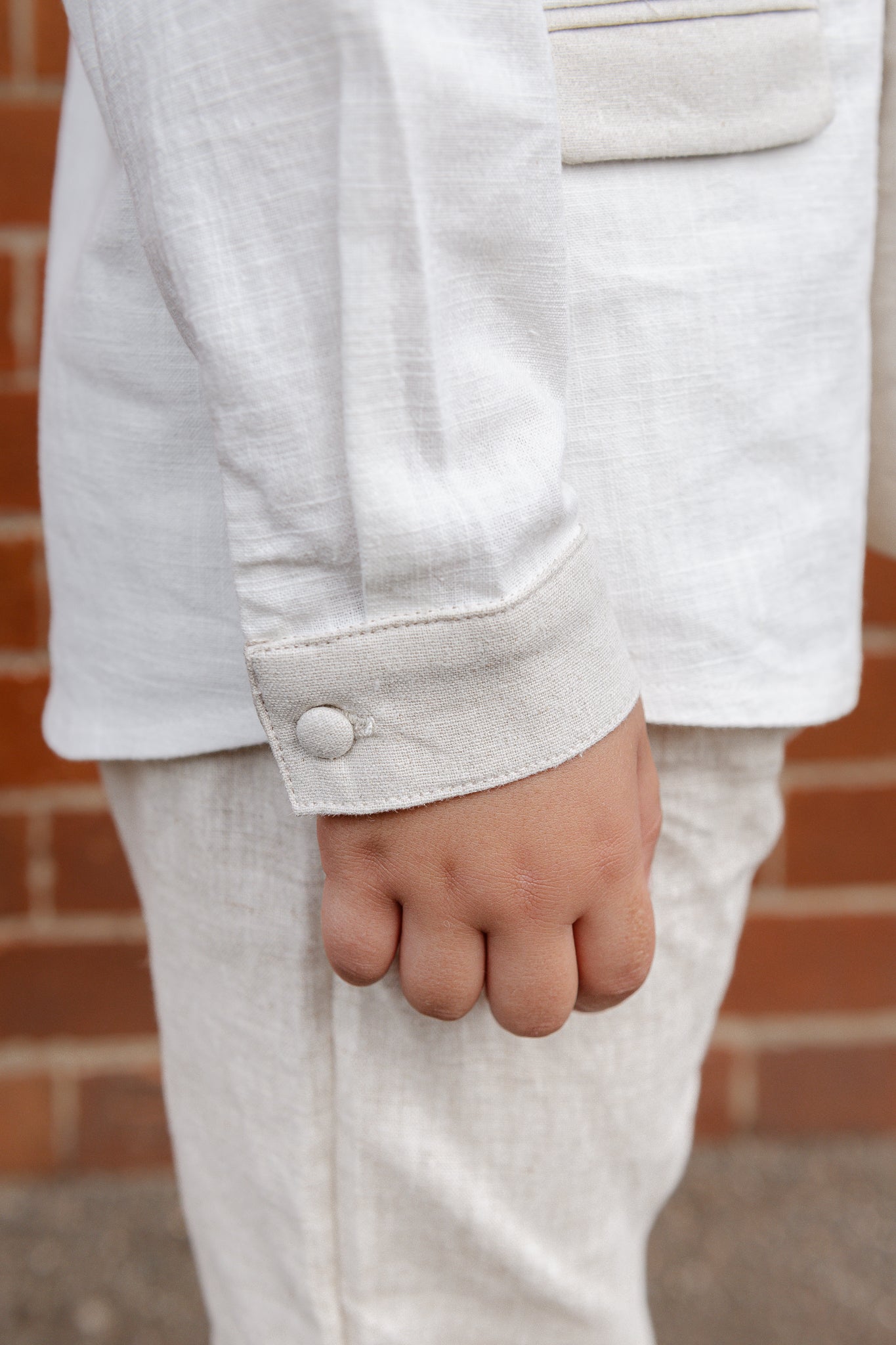 The Romeo Linen Top is a double-breasted boys’ shirt crafted from a breathable cotton and linen blend. Designed with classic collar detailing and a tailored yet relaxed fit, it’s both comfortable and refined.