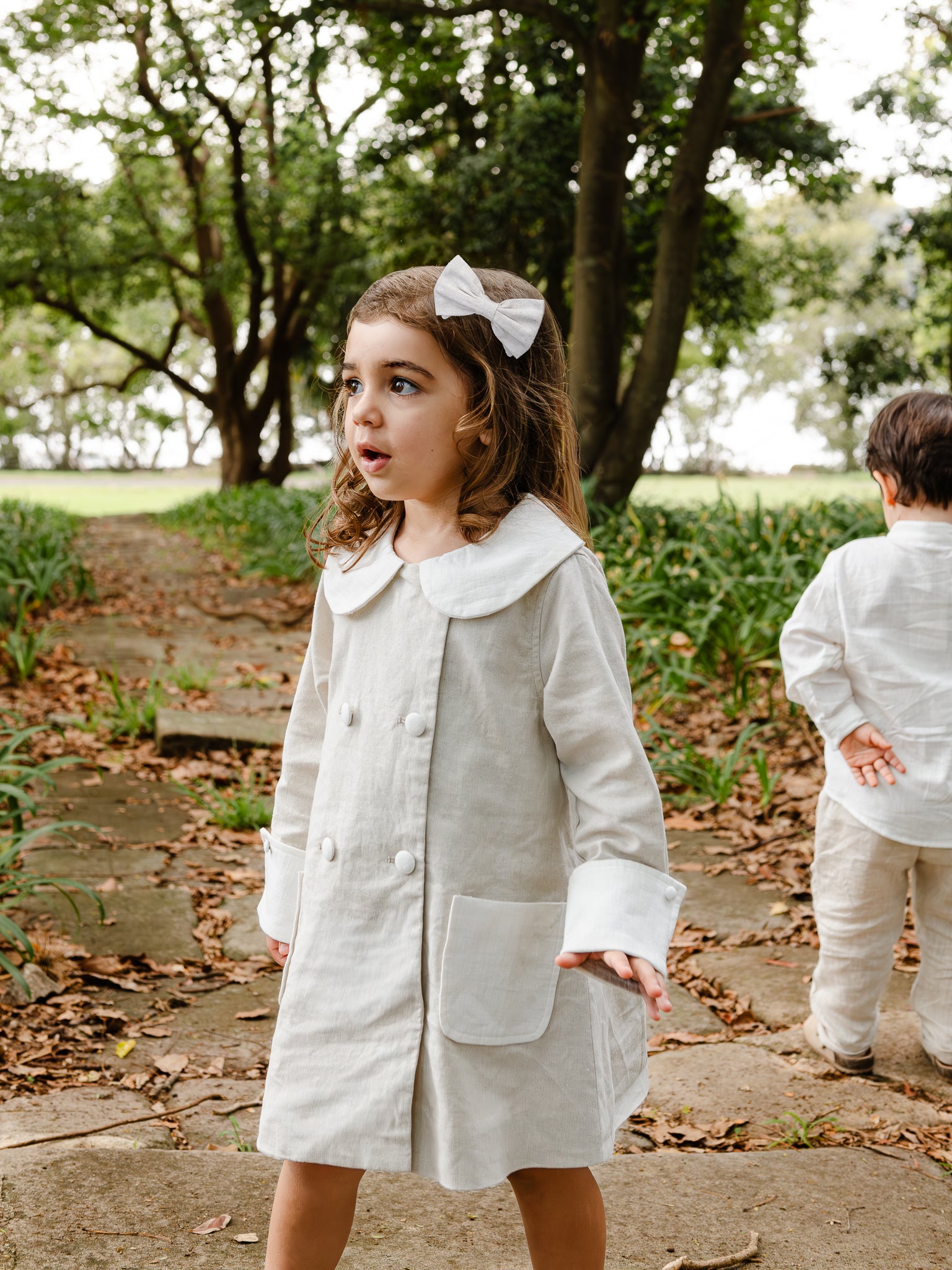 Made from premium linen in classic white and natural tones, these sweet clips are perfect for holding tiny wisps in place while adding a soft, romantic touch. Sold in a set of two; white & beige.